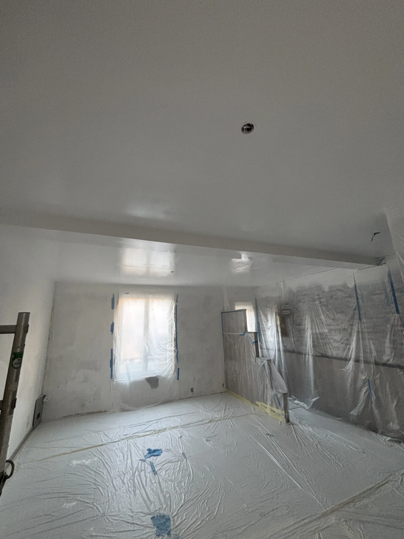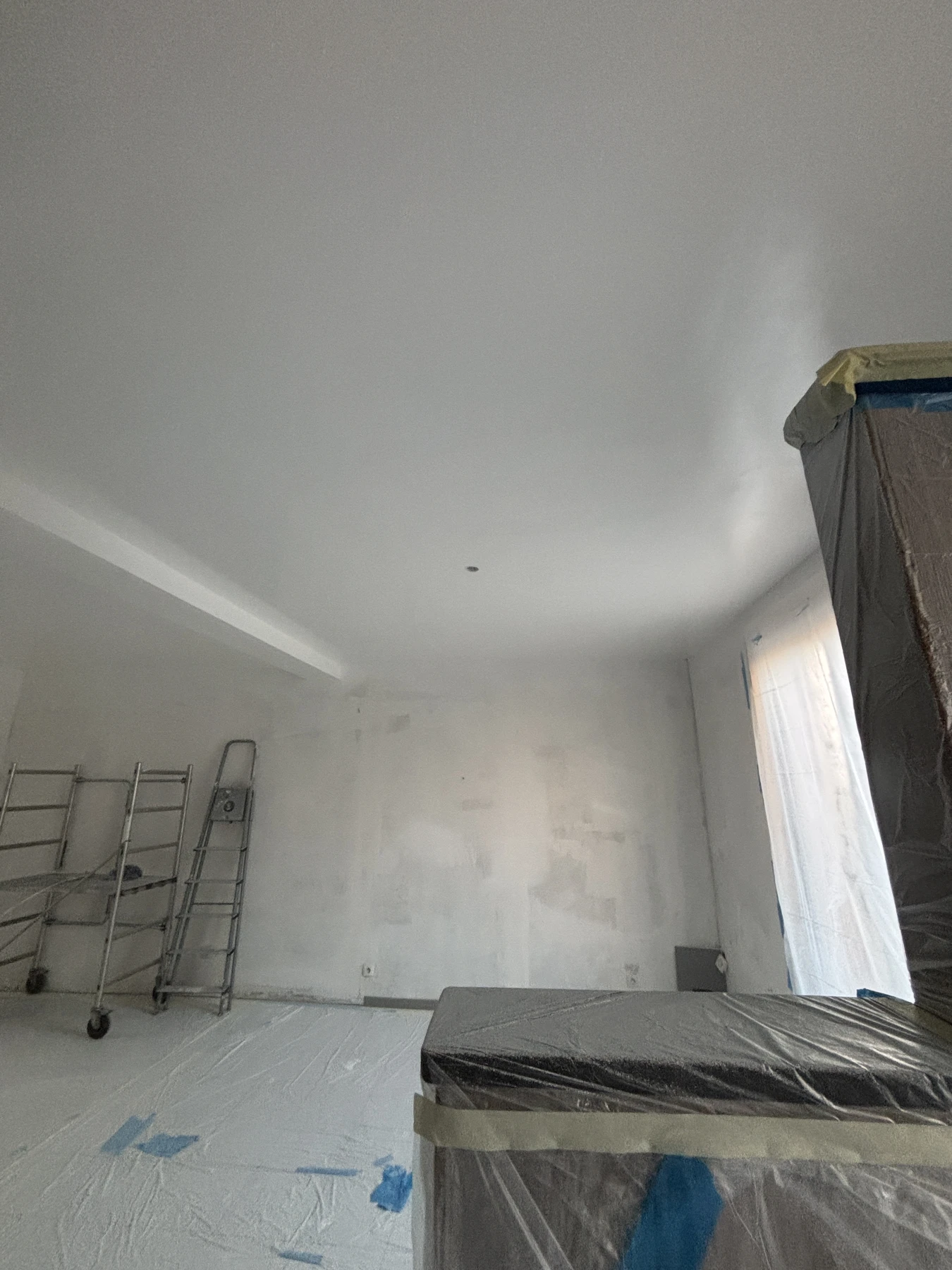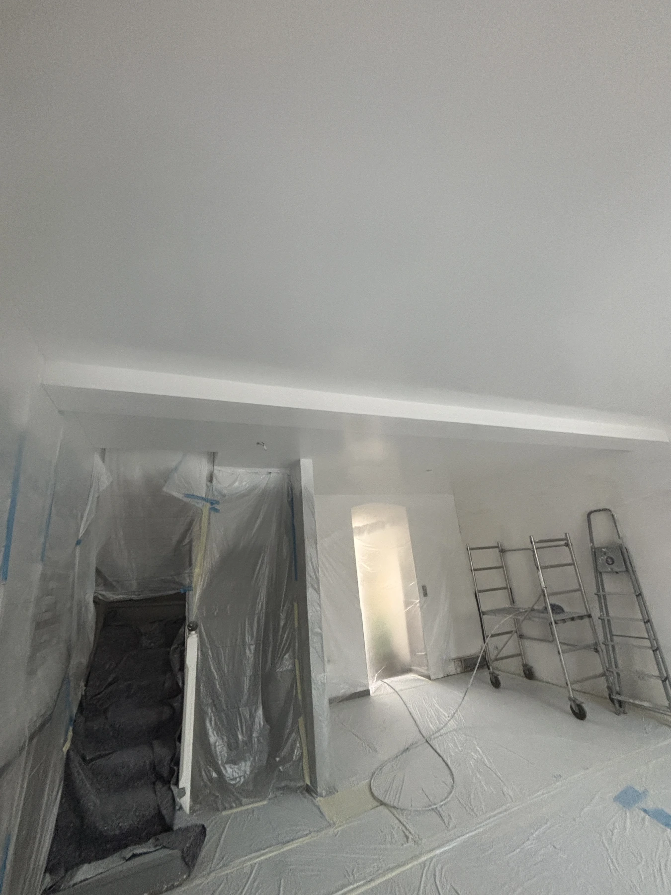 Mise en peinture 2 couches au pistolet airless pour ce plafond sur la ville de Mers-les-Bains (76) (80)