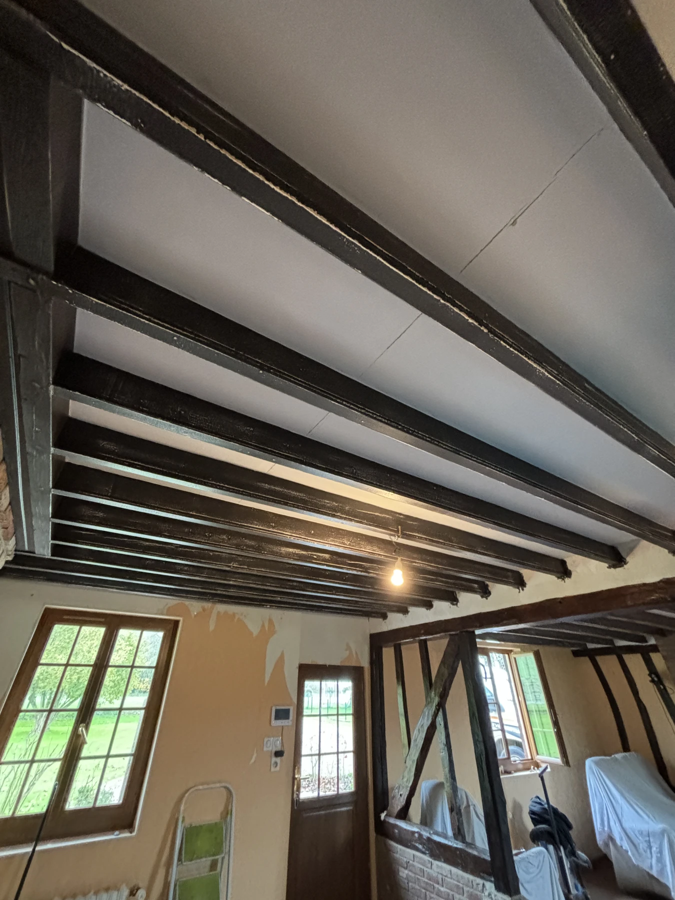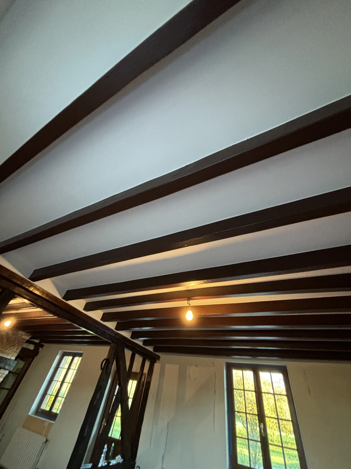 Rénovation peinture plafond avec poutres à Saint-Aubin-le-Cauf (76)